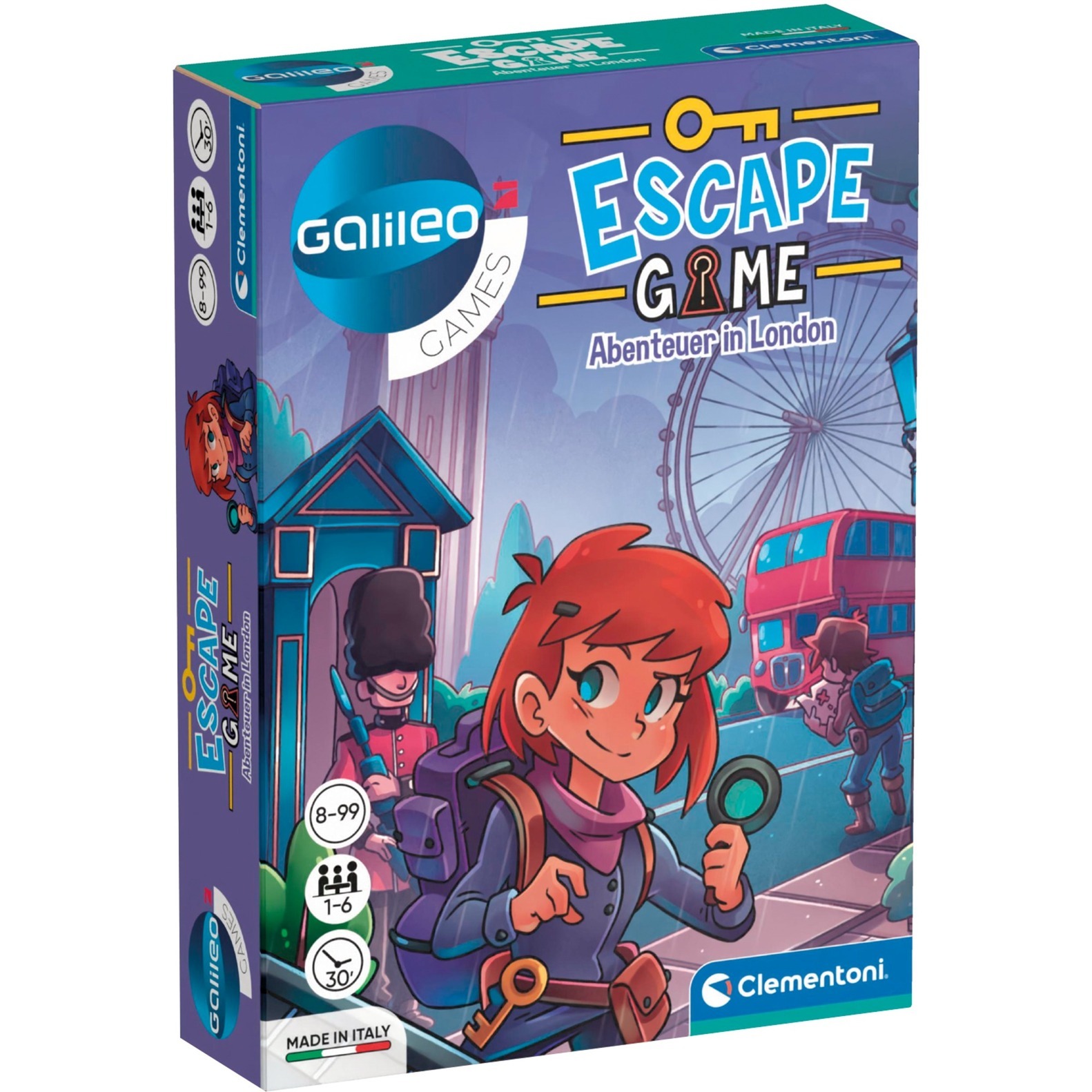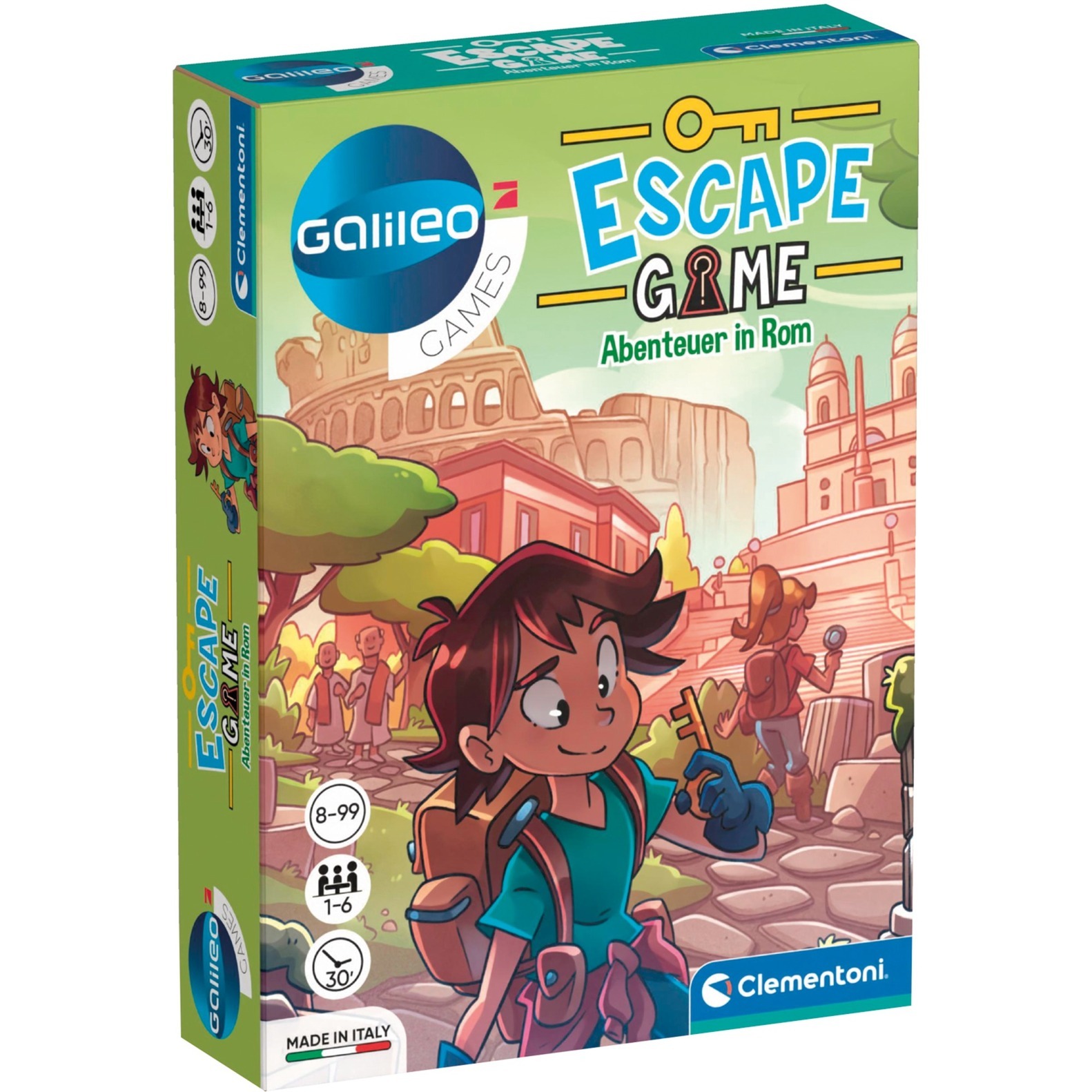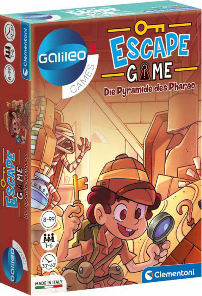 Das CLEMENTONI® Spiel Galileo lädt Sie ein, ein faszinierendes Museum mit jahrhundertealter Geschichte zu erkunden. In diesem spannenden Escape Room-Spiel müssen Sie Rätsel lösen und Hinweise finden, um die Eingangstür zu öffnen und zu entkommen.